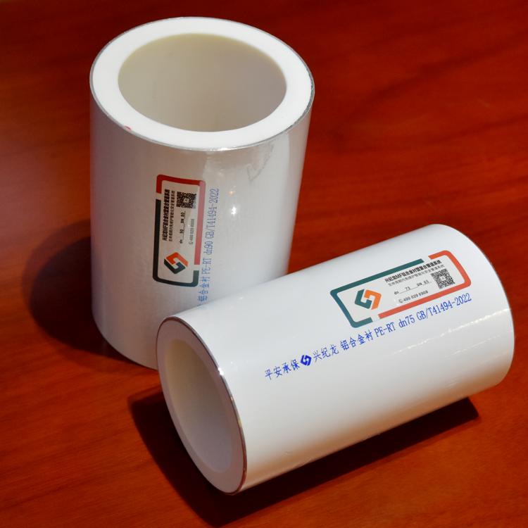 外層鋁合金:外層鋁合金層采用6063合金無縫鋁管,顏色為白色,表面采用高溫口噴涂氟碳樹脂材料,使外層鋁管有了較強(qiáng)的硬度且提高了鋁合金管耐酸堿、耐腐蝕性能,與建筑墻體顏色一致,不易褪色。內(nèi)層PE-RT材料:與興紀(jì)龍牌PE-RT產(chǎn)品材料特性相同。