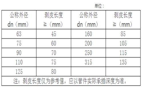 1、用專用切割機(jī)切斷鋁合金襯塑復(fù)合管材,切面(斷面)應(yīng)平齊垂直于管材軸線,電熔連接剝皮長(zhǎng)度見下表。